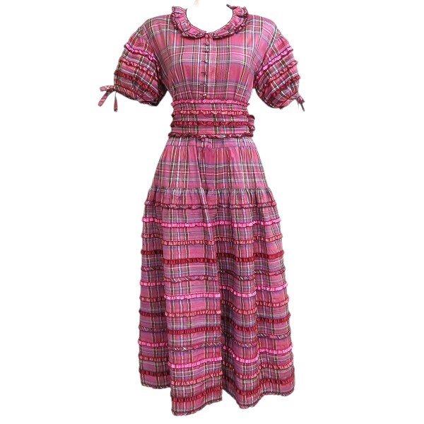 - #sux ワンダフルワールド WONDERFUL WORLD カネコイサオ 半袖 ワンピース ピンク チェック 絹 ピコフリル コレクター [970470] k01