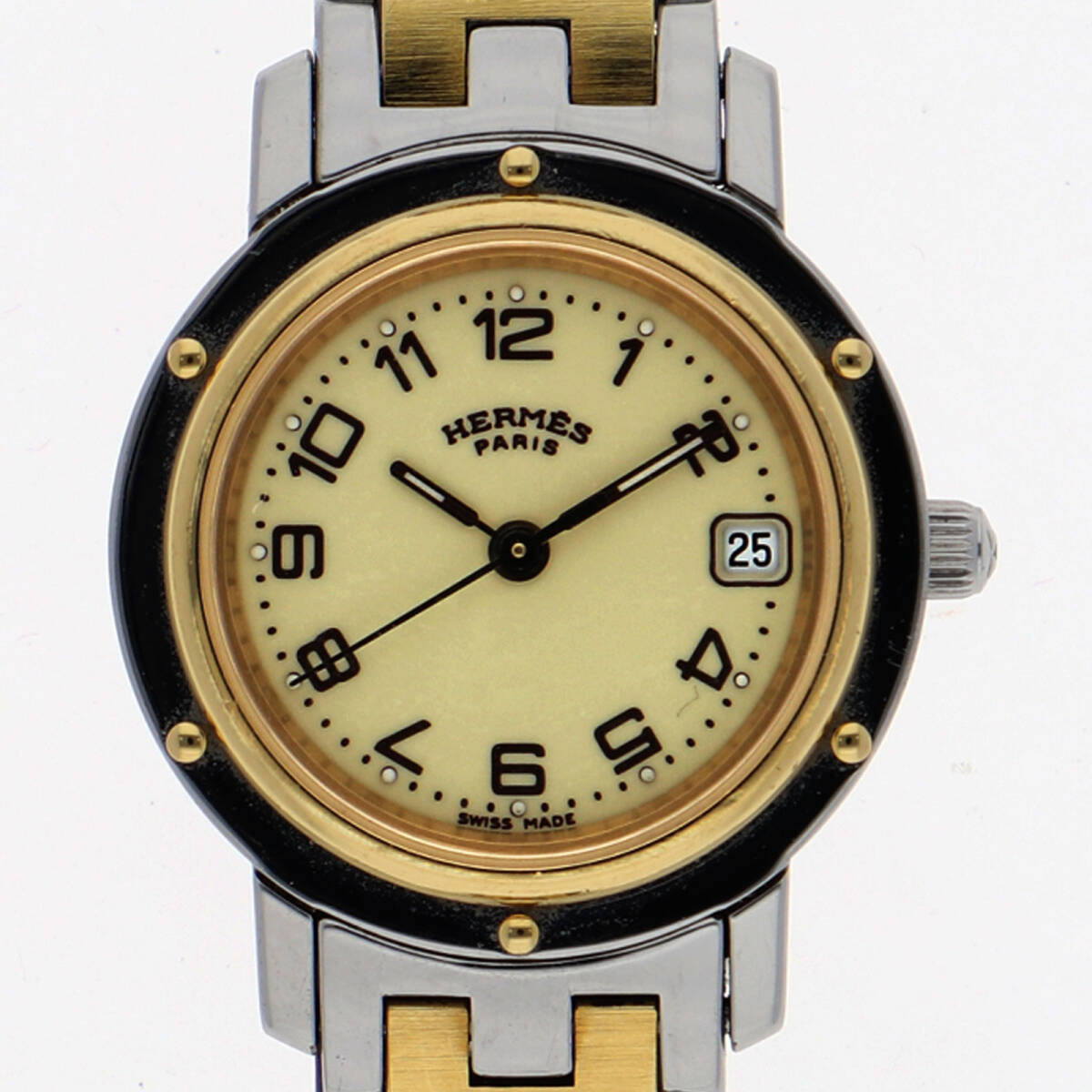 > HERMES エルメス CL4.220 クリッパー アイボリーダイヤル GP/SS クオーツ レディース【136828】