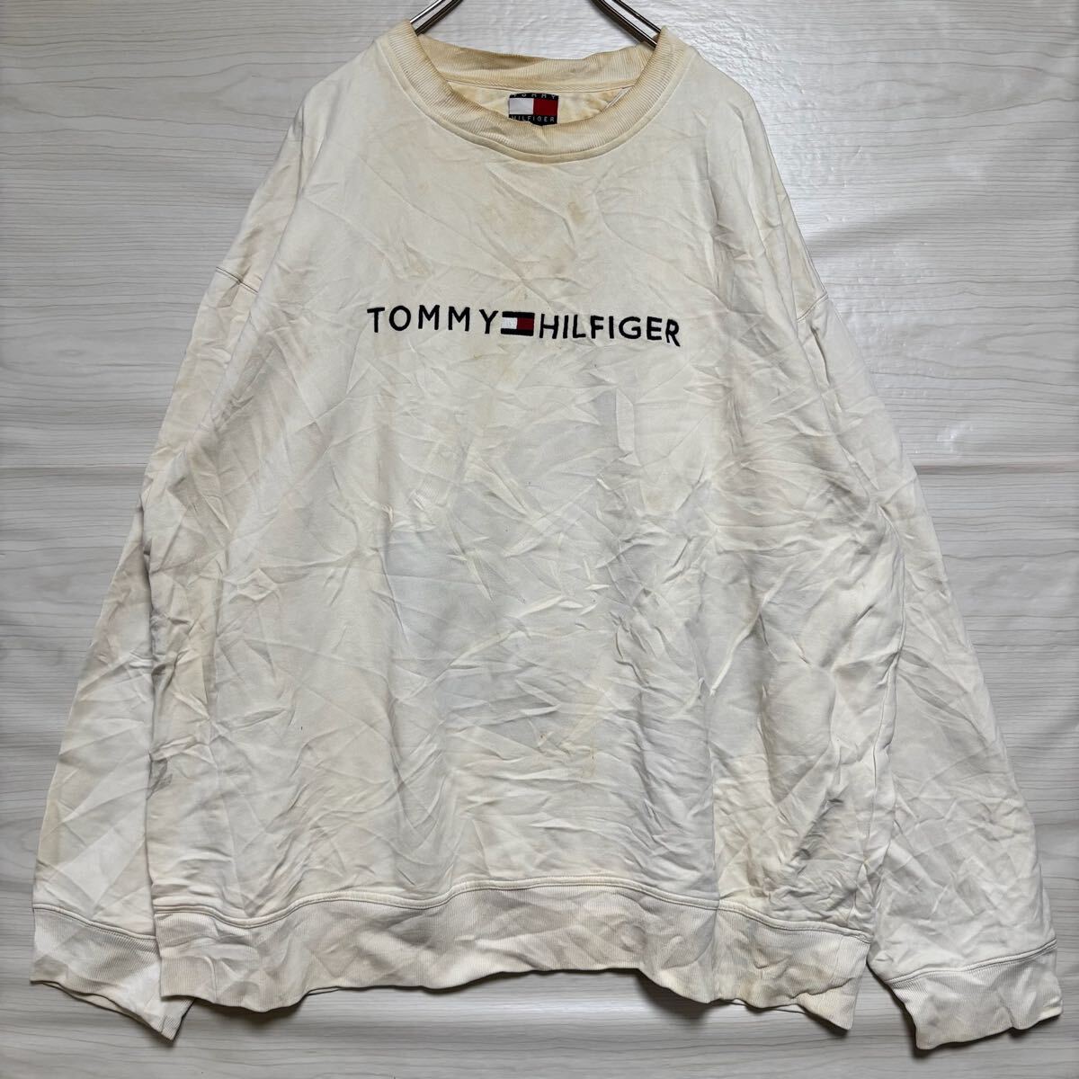> TOMMY HILFIGER トミーフィルフィガー スウェット トレーナー フロントロゴ刺繍 サイズXXL ホワイト 白 コットン メンズ トップス(36)