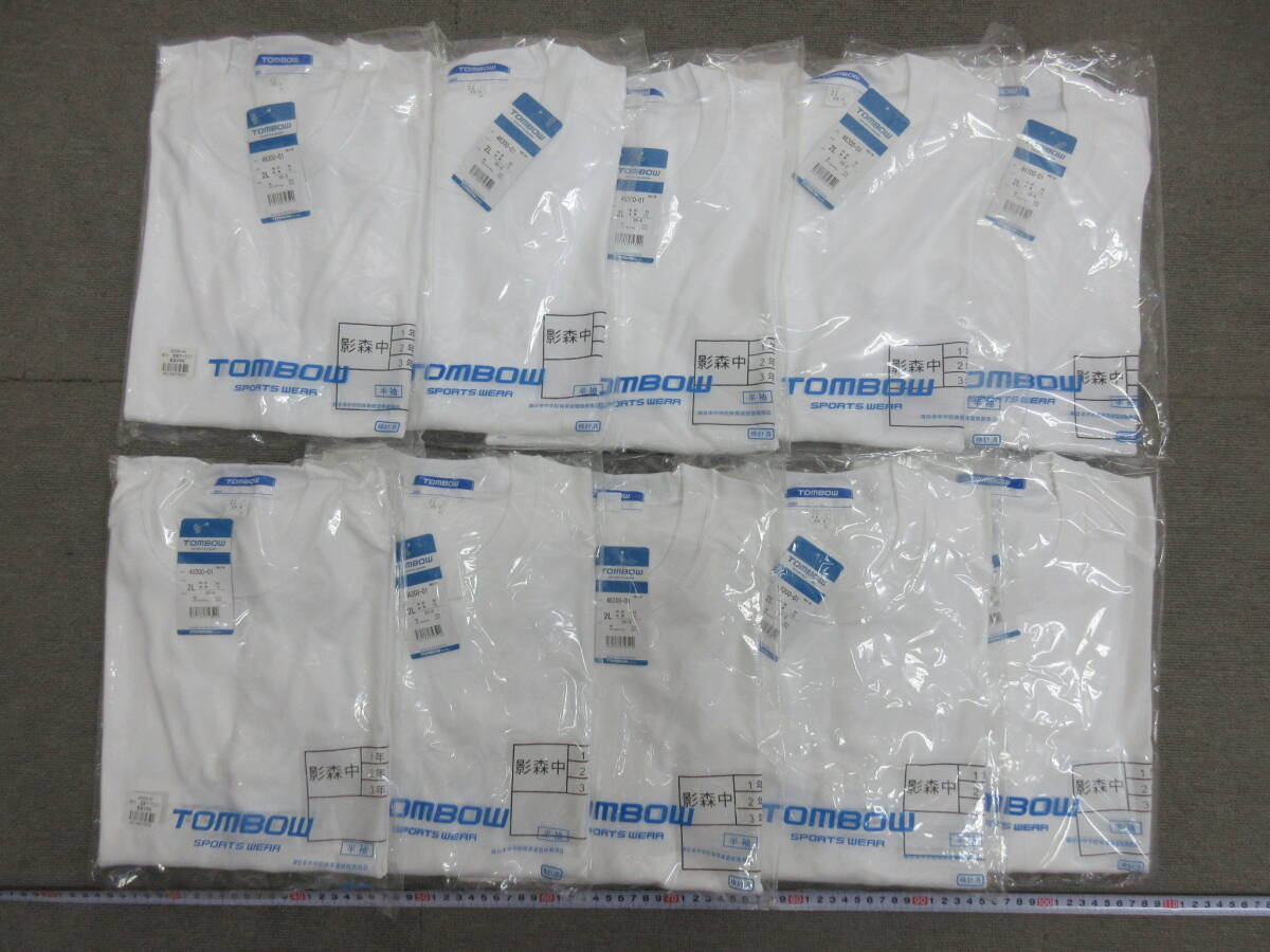 - M【10-27】●6 衣料品店在庫品 トンボ 体育着 体操着 半袖シャツ 2Lサイズ 10点まとめて 未使用長期保管品 / 影森中学校 ジャージ【5-28】