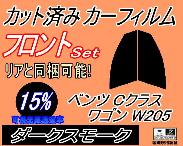 - カーフィルム ダークスモーク カット済み フロントセット ベンツ Cクラス ワゴン W205 (s) 運転席 助手席 ガラスフィルム