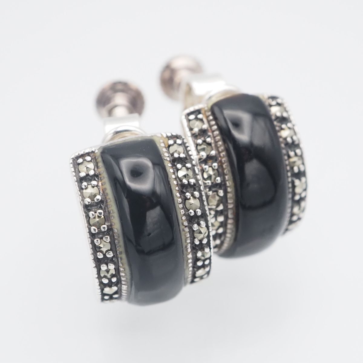- G858 オニキス マーカサイト マルカジット SILVER925刻印 イヤリング デザイン シルバー ヴィンテージ
