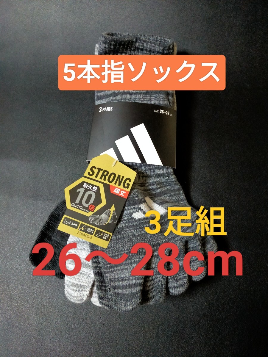 > 26cm~28cm★送料無料⑦即決!3足組【adidas】アディダス 五本指ソックス メンズ 男性用 大人用 靴下 5本指ソックス 紳士用 ソックス