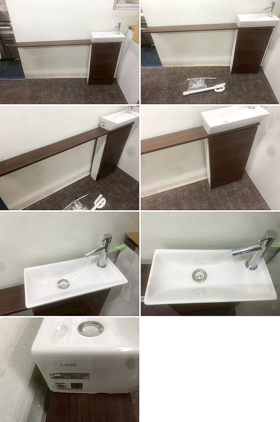 > 23797■TOTO トイレカウンター W1340 手洗い器ボウル付 木製天板■展示品/取り外し品/未使用品
