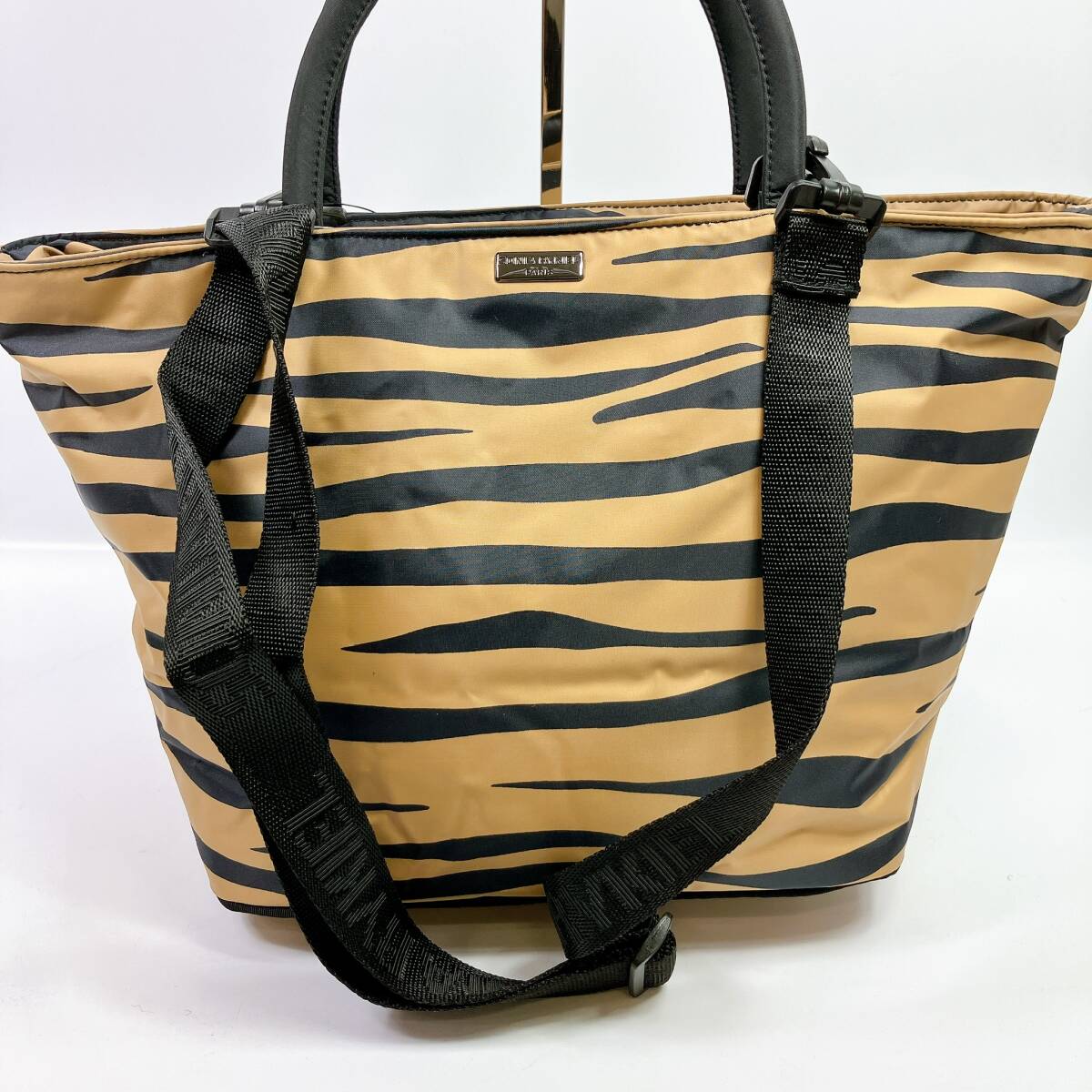 - 1791◯ SONIA RYKIEL ソニアリキエル ハンドバッグ ナイロン 黄色 イエロー ブラック ゼブラ柄 2WAY ショルダーバッグ ファスナー ポケット