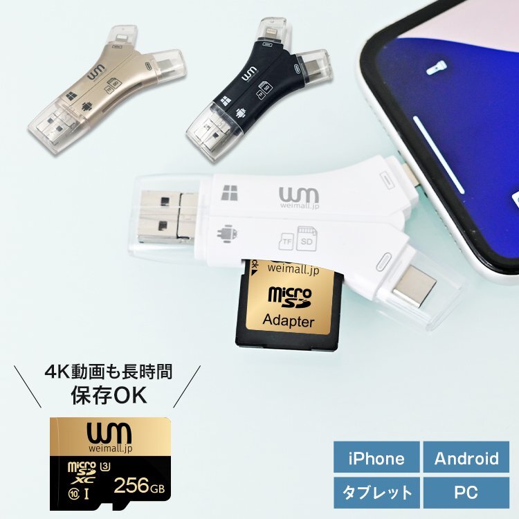 > SDカードリーダー (ホワイト) 256GB 対応 USBメモリ 外付け バックアップ マルチカードリーダー データ移行 スマホ 転送 SDカード 新品 未