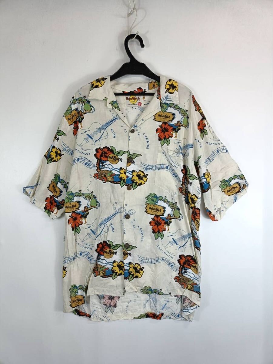 - ハワイ製 hilo hattie ハードロックカフェ Hard Rock CAFE アロハシャツ Mサイズ