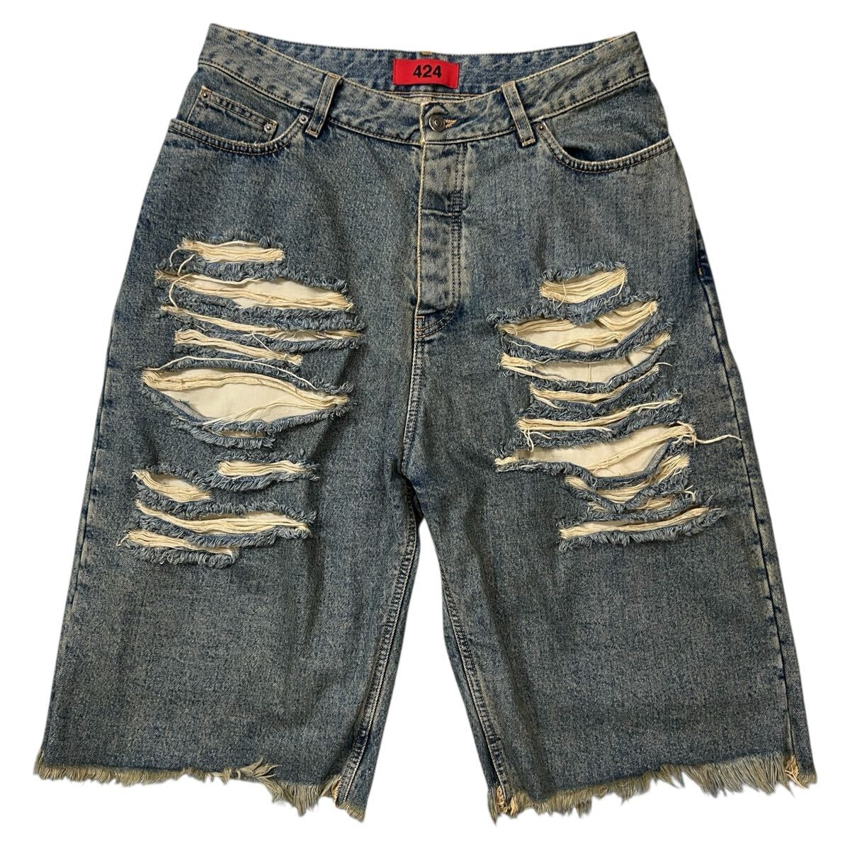 > 424 ビッグダディー デストロイ加工 デニムショーツ 424 “Big Daddy” Destroyed Denim Shorts フォートゥーフォー ハーフパンツ