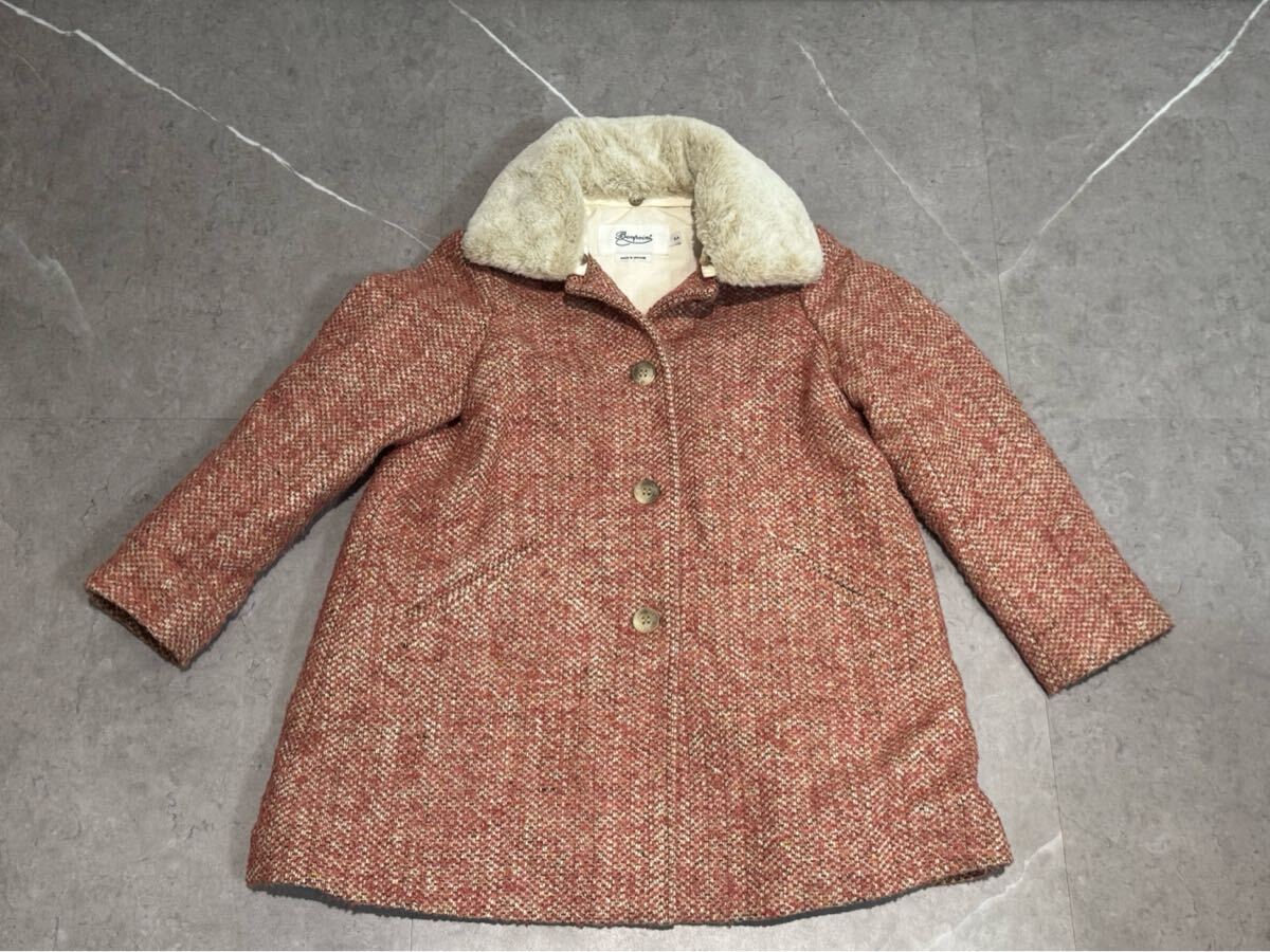 - ★BONPOINT ボンポワン コート ツイード 取り外し可能なファー襟付 お洒落 美品 6A★