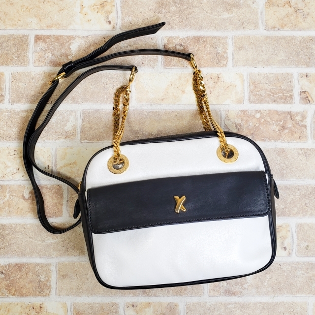 - 美品 パロマピカソ ヴィンテージ バイカラー チェーン ショルダーバッグ イタリア製 モノトーン ブラック ポシェット Paloma Picasso