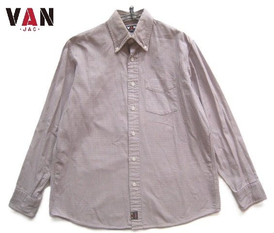 - 美品!!ヴァンヂャケット VAN JAC*当時物 胸ポケット付き 千鳥柄ボタンダウンシャツ M 白×黒×茶 80s 90s ビンテージ アーカイブ