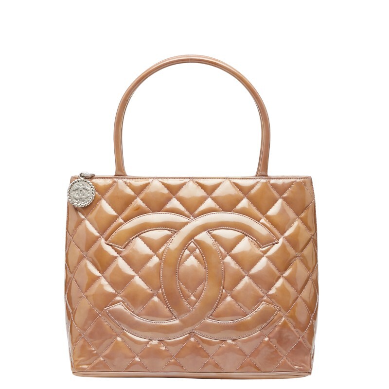 - シャネル 復刻トート ココマーク トートバッグ ベージュ パープル エナメル レザー レディース CHANEL 【中古】