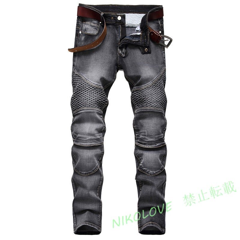 - ☆新品メンズジーンズ デニムパンツ チノパン クラッシュ ロングパンツ ストリート 細身 スリム カジュアル 灰黒色