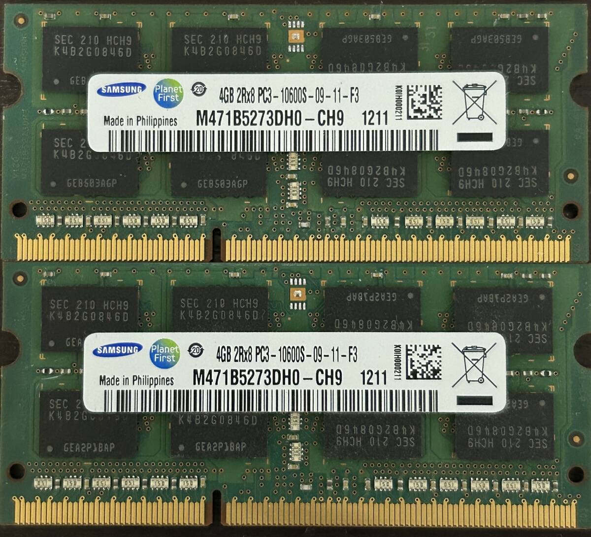 > 即決 動作確認済み SAMSUNG サムスン SO-DIMM 204pin DDR3 PC3-10600S 4GB×2枚 ノートパソコン用 725