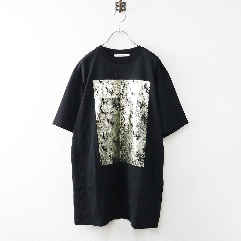 - ミディウミソリッド MIDIUMI SOLID ゴールド箔プリント ビッグシルエット Tシャツ ブラック┃日本製 黒 トップス TEE【2400014652956】