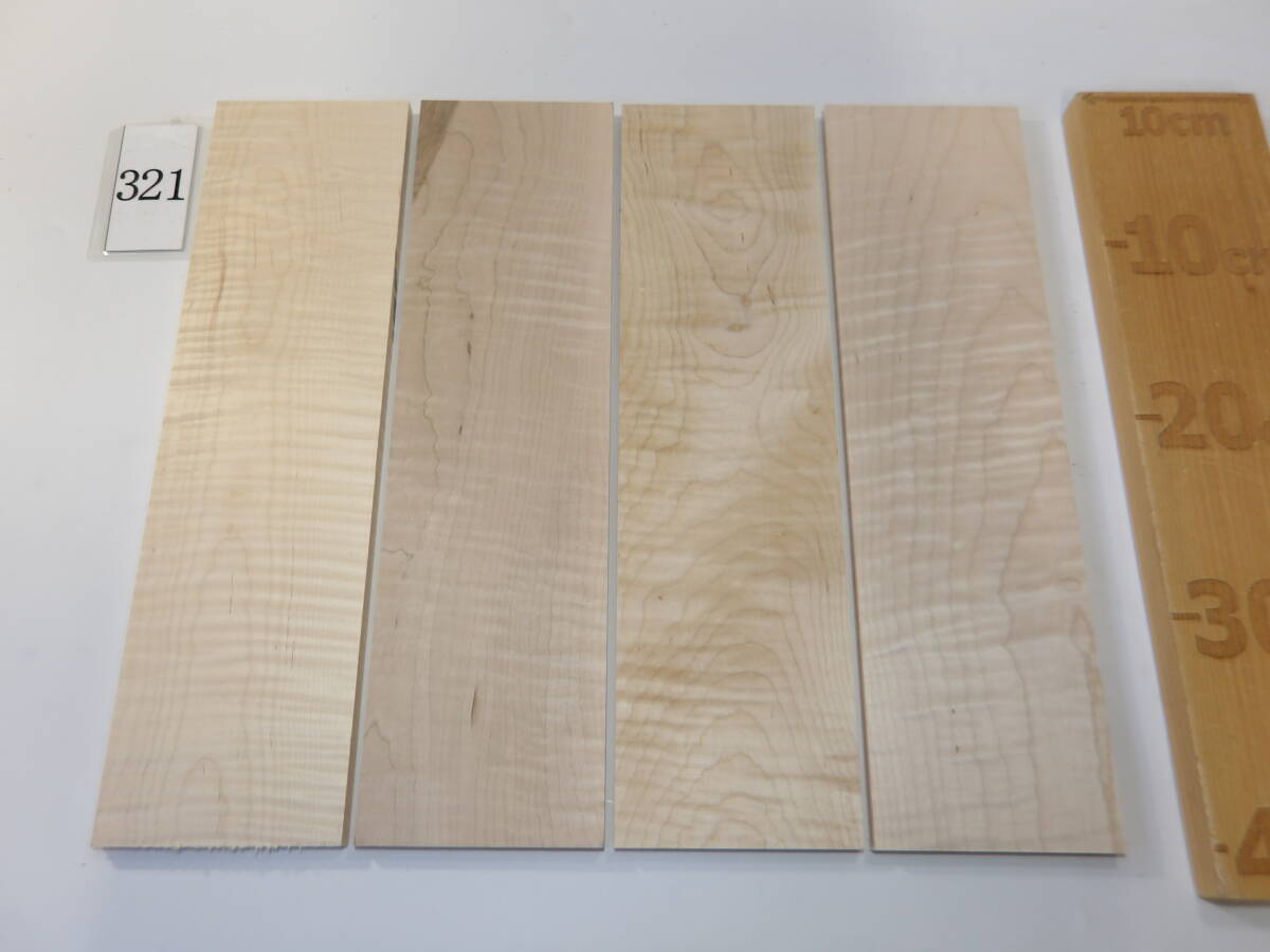 - 木っ端クラブ ★杢入り★ カーリーメープル 薄板 4枚入り (厚約11mm 幅約110mm前後) プレーナー済 DIY ハンドメイド A321