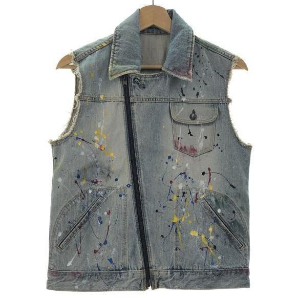 > 【中古】NUMBER(N)INE ペンキデニムライダースベスト 0 00357933495 ブルー ナンバーナイン[249008245284]