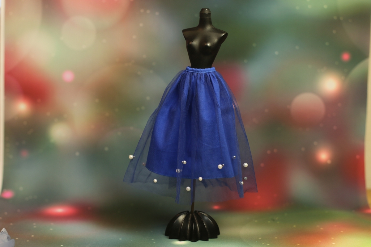 - 人形服是S112-003ローヤルブルーチュールビーズスカートmomoko、ジェニー、OBITSUボディ、MISAKI、ピュアニーモ
