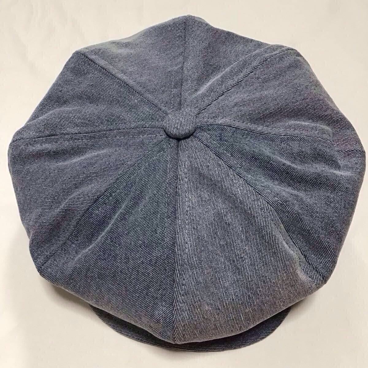 - クラウンの大きなキャスケット ウォッシュ加工のデニム生地 色落ちデニム 62cm ビッグアップル ニュースボーイ レトロ メンズ 菅468