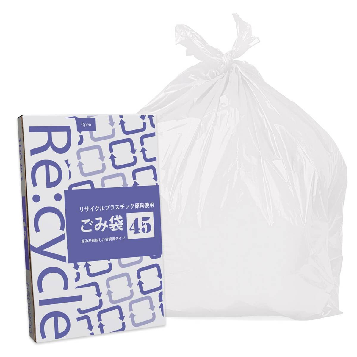 > 紺屋商事 ゴミ袋 白色半透明 45L×100枚(便利な箱入り) リサイクル原料使用 厚さ0.012mm 横65cm 縦80cm 乳白半透明