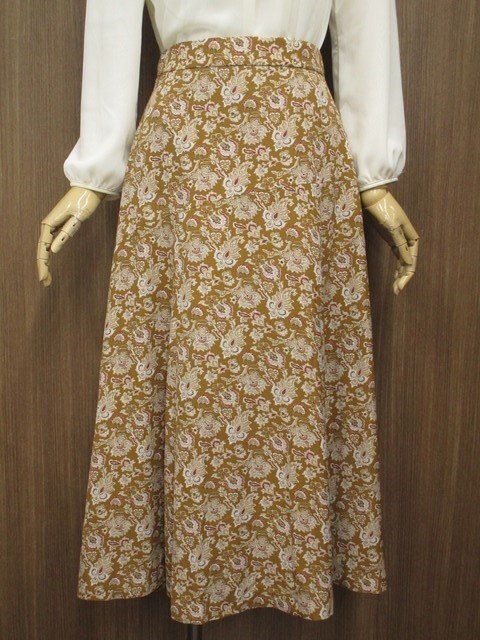 - 美品 ジェイプレス J.PRESS 洗えるロング丈 フレアスカート 9 茶系地 ブラウン×ベージュ×レッド ペイズリー柄 【メール便可】