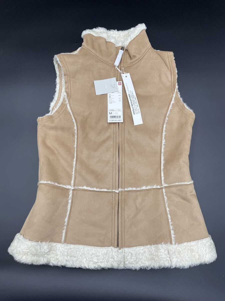 > 135【未使用・タグ付き・未検品】UNIQLO ユニクロ ネオレザーベスト(ムートンタイプ) サイズM