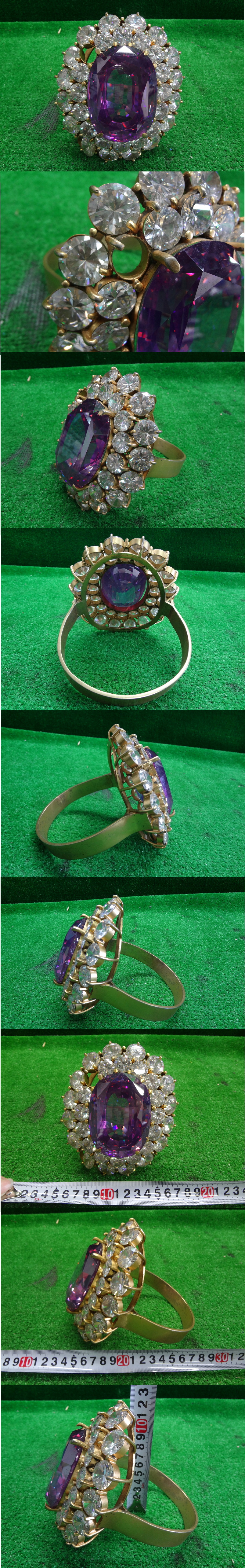 - Kラか3984 腕輪 指輪 ゴールドリング■イミテーション ガラス■クリアストーン 鋳物 インテリア 面白グッズ 大きい指輪