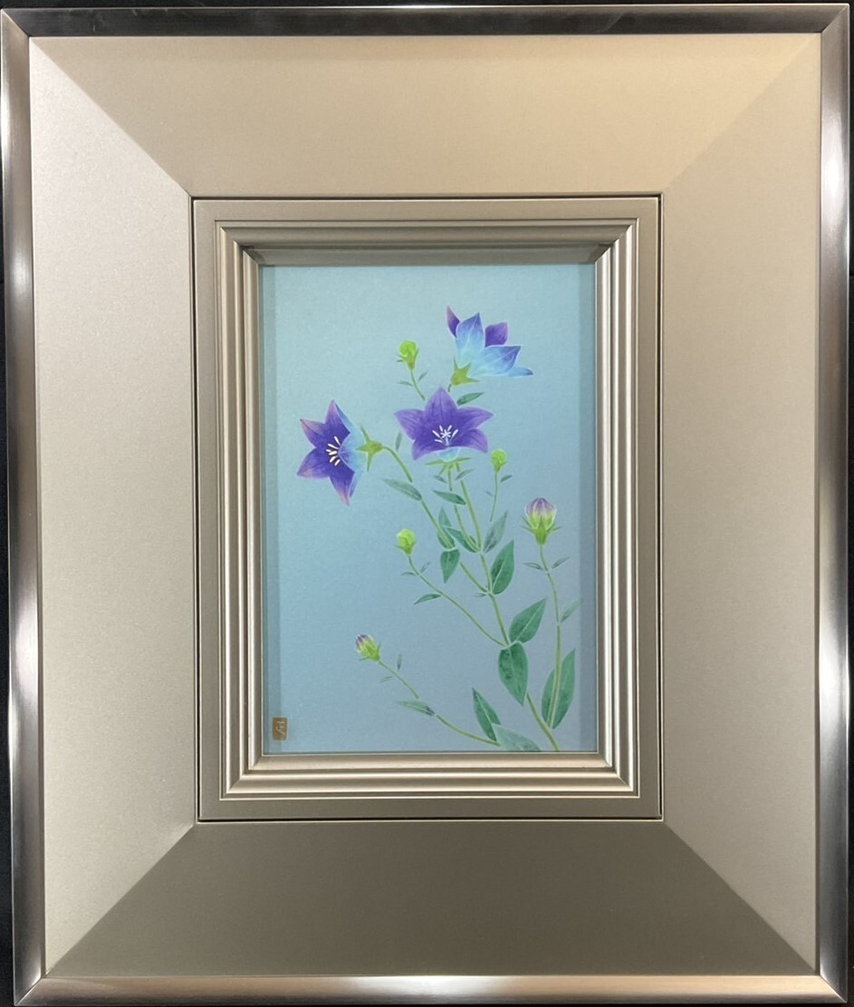 真作■日本画■小田部正邦■『桔梗』■共シール■実力作家・創画会入選■額付会画■10e
