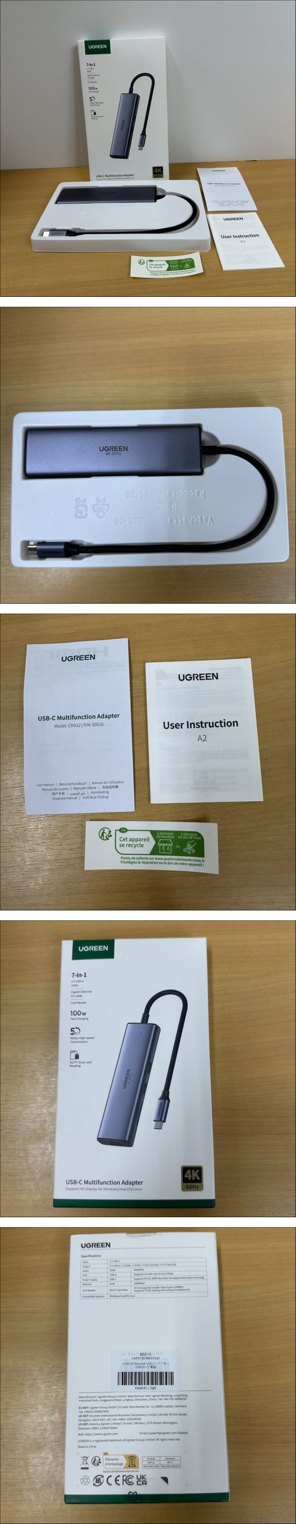 > 【中古】UGREEN USB Cハブ 4K@60Hz HDMI出力 7-IN-1 Type-Cアダプター 60515 CM512【良品】