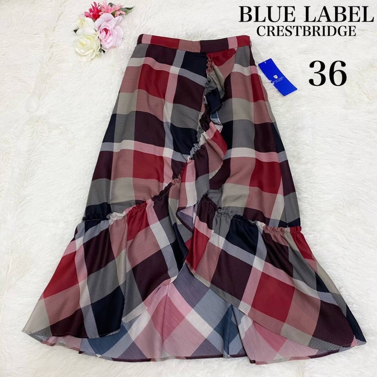 - 【未使用】ブルーレーベル スパンツイル スカート フリル チェック レッド 36