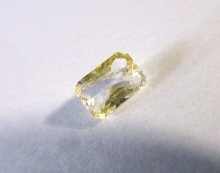 無色のフェナカイトで、黄色いインクルージョンが入っているため、全体に少しイエローに見えます。透明感とテリがあります。非加熱。