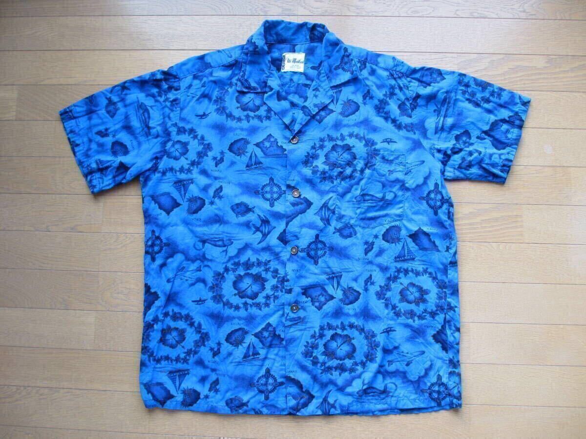 - 美品 60S~70S 60年代~70年代 ヴィンテージ ビンテージ オリジナル Ui-Maikai ハワイアン アロハ オールプリント 袋襟 エンゼルフィッシュ
