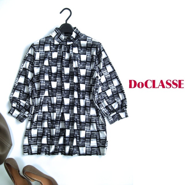 - ドゥクラッセDoCLASSEモノトーン柄プリントプルオーバーブラウスXL