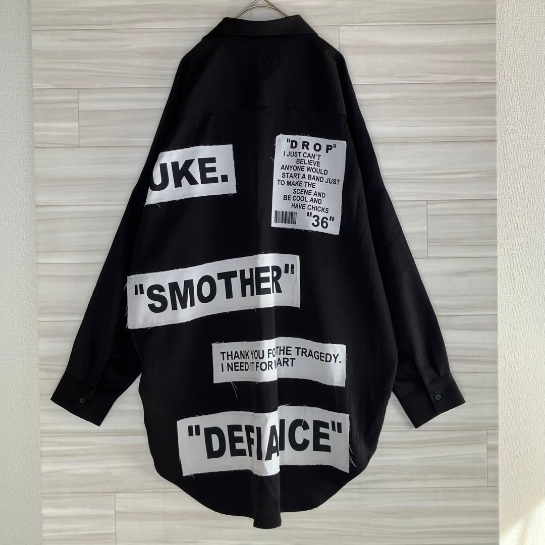 > 【美品】 RINGS リングス デザイン 長袖 シャツ ビッグシルエット コート ブルゾン 派手 奇抜 ワッペン 大きい ビッグサイズ レタリング