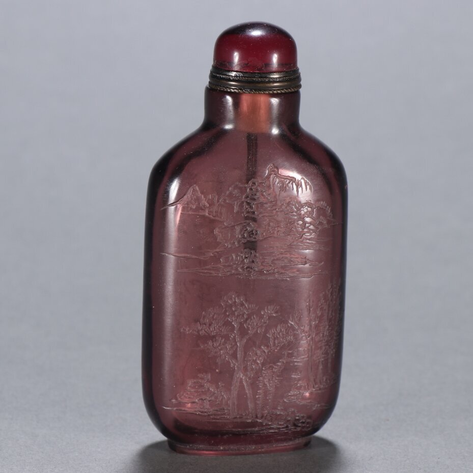 - ▽鴻▽ 清朝時代 瑠璃彫 山水風景紋鼻煙壺 時代物 中国古美術 骨董品