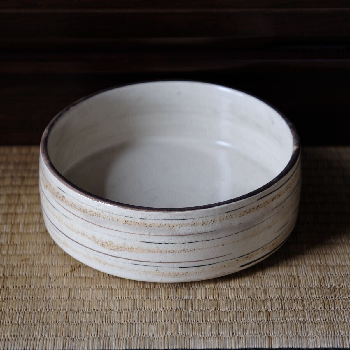 - 明治 大正時代 麦藁手 輪線 螺旋 ドラ鉢 銅羅鉢 菓子鉢 絵瀬戸 古瀬戸 黄瀬戸 古陶磁 古民藝 古民芸 古民具 時代物 骨董 茶道具