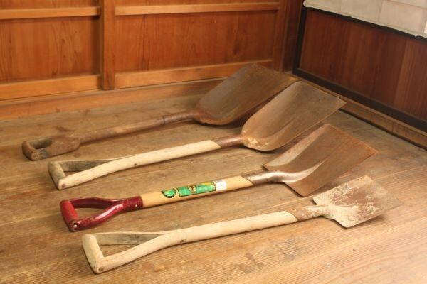 - 【格安中古】★美品 土木作業『角型スコップ 金属製 まとめて4本』★検:(シャベル/工事/四角/アウトドア/砂利/スノー/雪かき/当時物)70528C