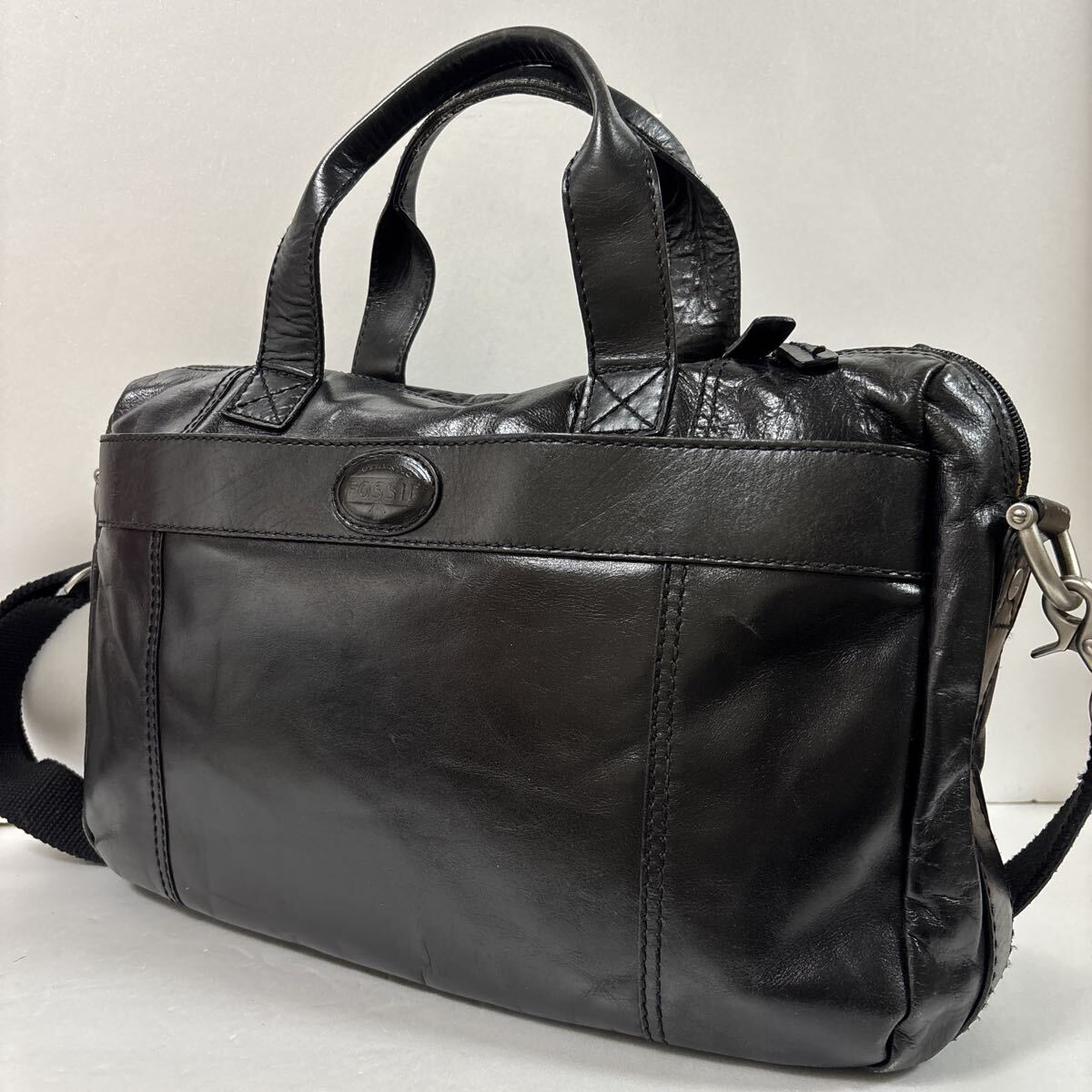 - 【美品】 フォッシル FOSSIL バッグ ブリーフケース ビジネスバッグ 鞄 ビジネス メンズ ブラック 2WAY ショルダーバッグ オールレザー