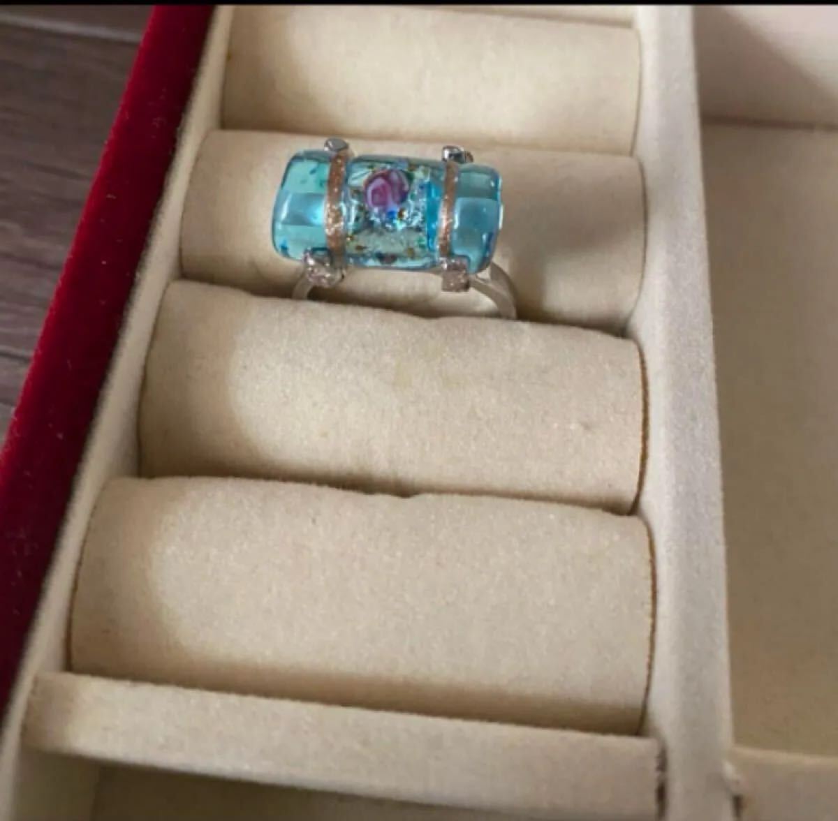 - とんぼ玉 ガラス リング 指輪 水色 薔薇柄 ローズ柄 ビーズ シルバー アクセサリー 11号 13号 14号