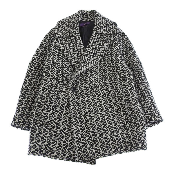 > ワイズ タケシコウサカ Y's 厚手 ツイードコート カシミヤ昆 レディース 黒 白 size1 yf-c43-121 [Y01233]