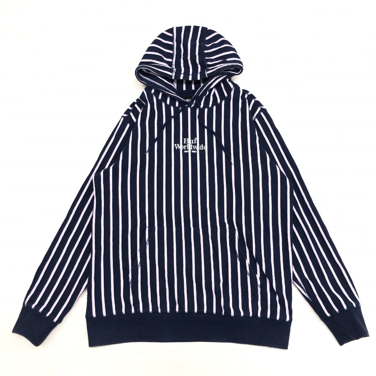 - ●HUF ハフ ロゴ刺繍 ストライプ スウェット パーカー XL 濃紺 フーディ トレーナー ストリート スケボー 2L LL 特大 大きいサイズ メンズ