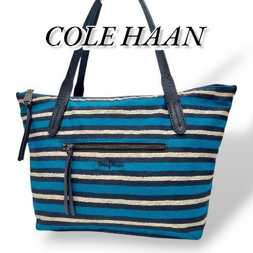 > 【希少】COLE HAAN コールハーン トートバッグ ボーダー A4収納可 良品 人気モデル 肩掛け ショルダー 取手レザー