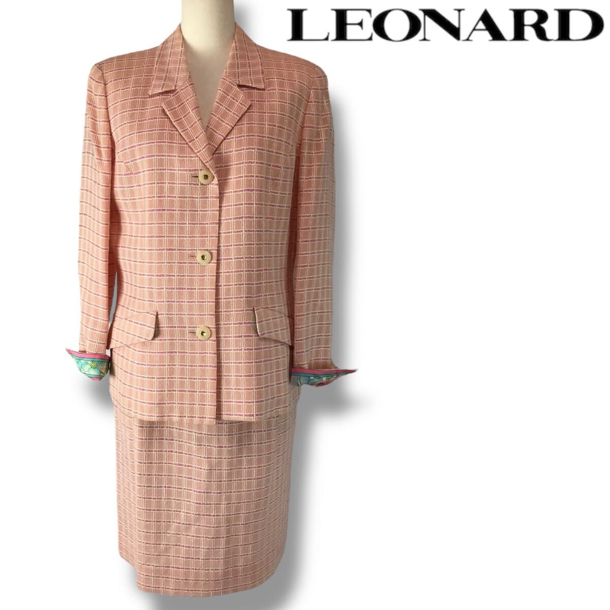 - d205 LEONARD レオナール ツイード セットアップ ジャケット スカート ピンク 38 レディース スーツ フォーマル ビジネス 正規品