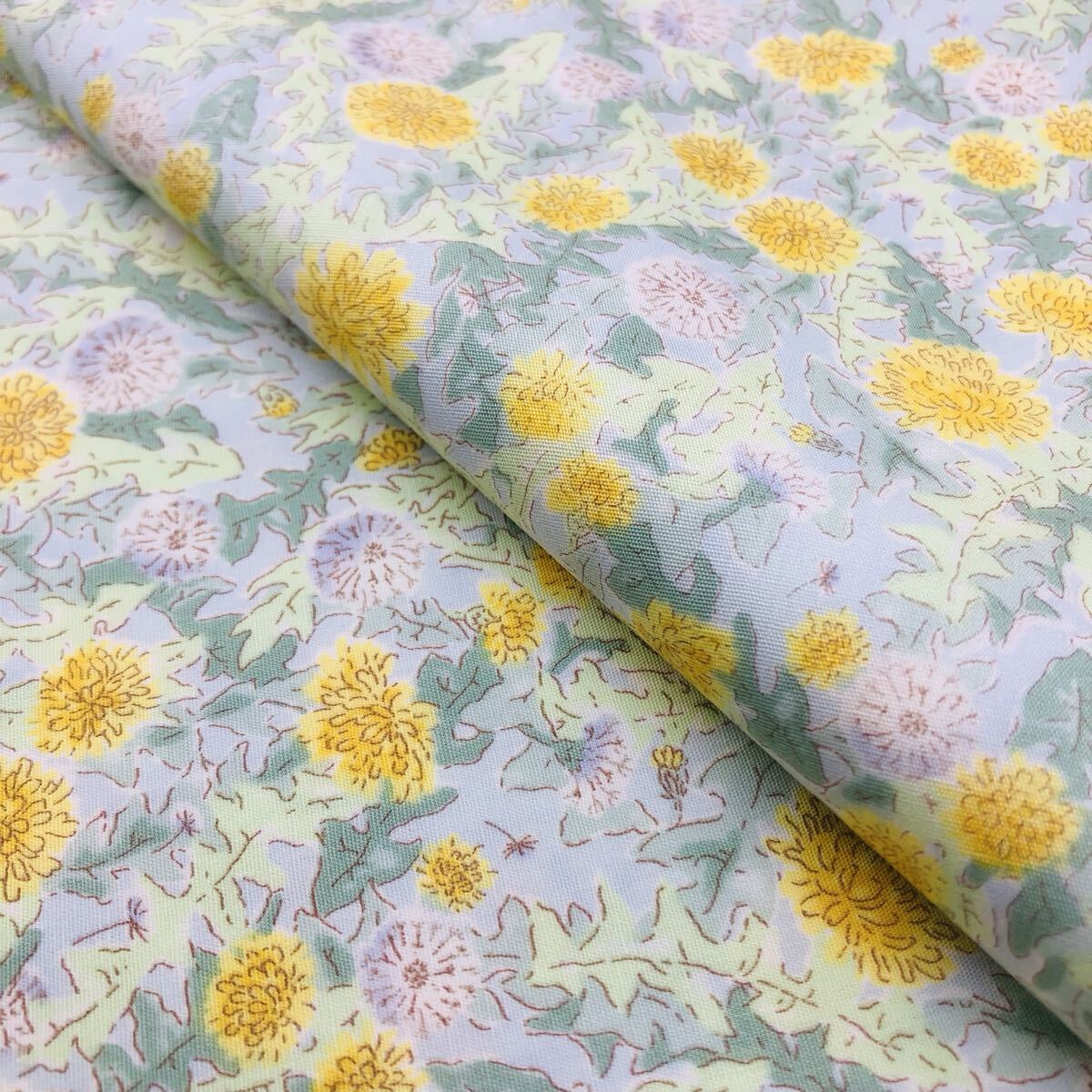 - 1m 日本製 ブロード たんぽぽ コットン 生地 はぎれ 108×100 花柄 ボタニカル