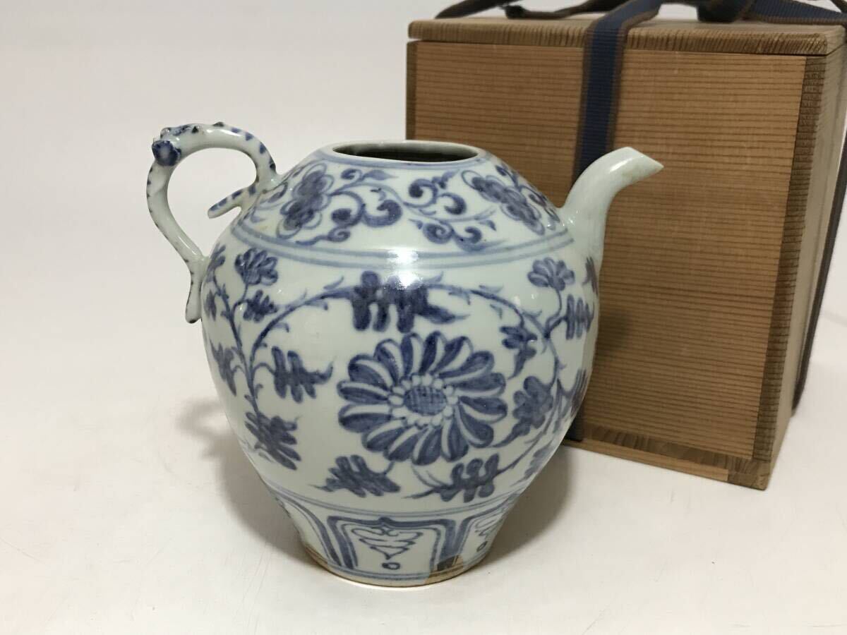 - 【中国古美術特集】元~明時代 染付唐草紋水注 箱付 検「 唐物 朝鮮 高麗 李朝 煎茶道具」