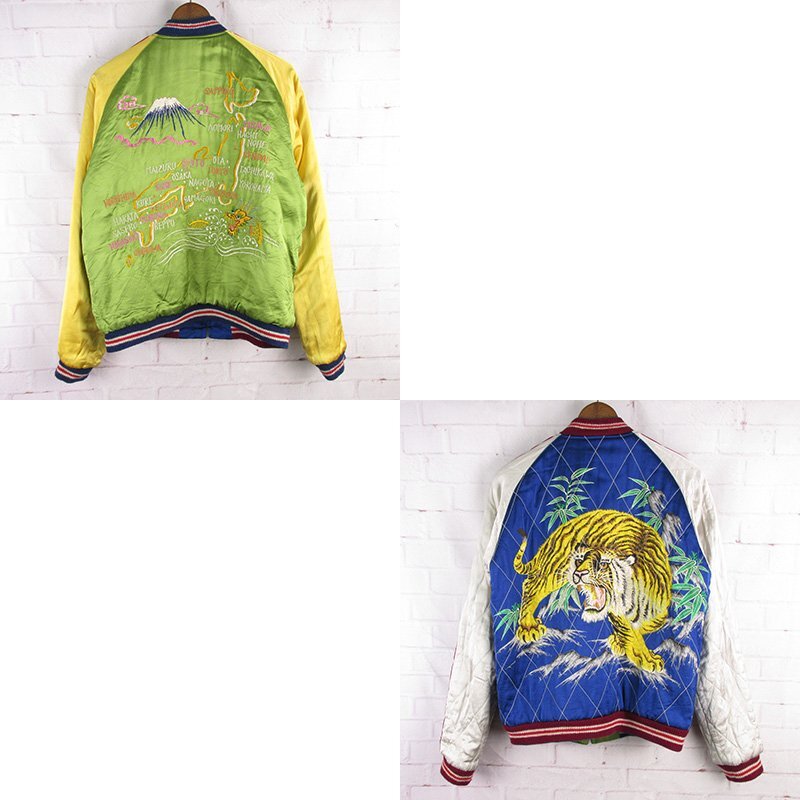 > FJ27808 テーラー東洋 港商 スペシャルエディション スカジャン JAPAN MAP×TIGER PRINT TT15198 グリーン系×ブルー系 中 美品