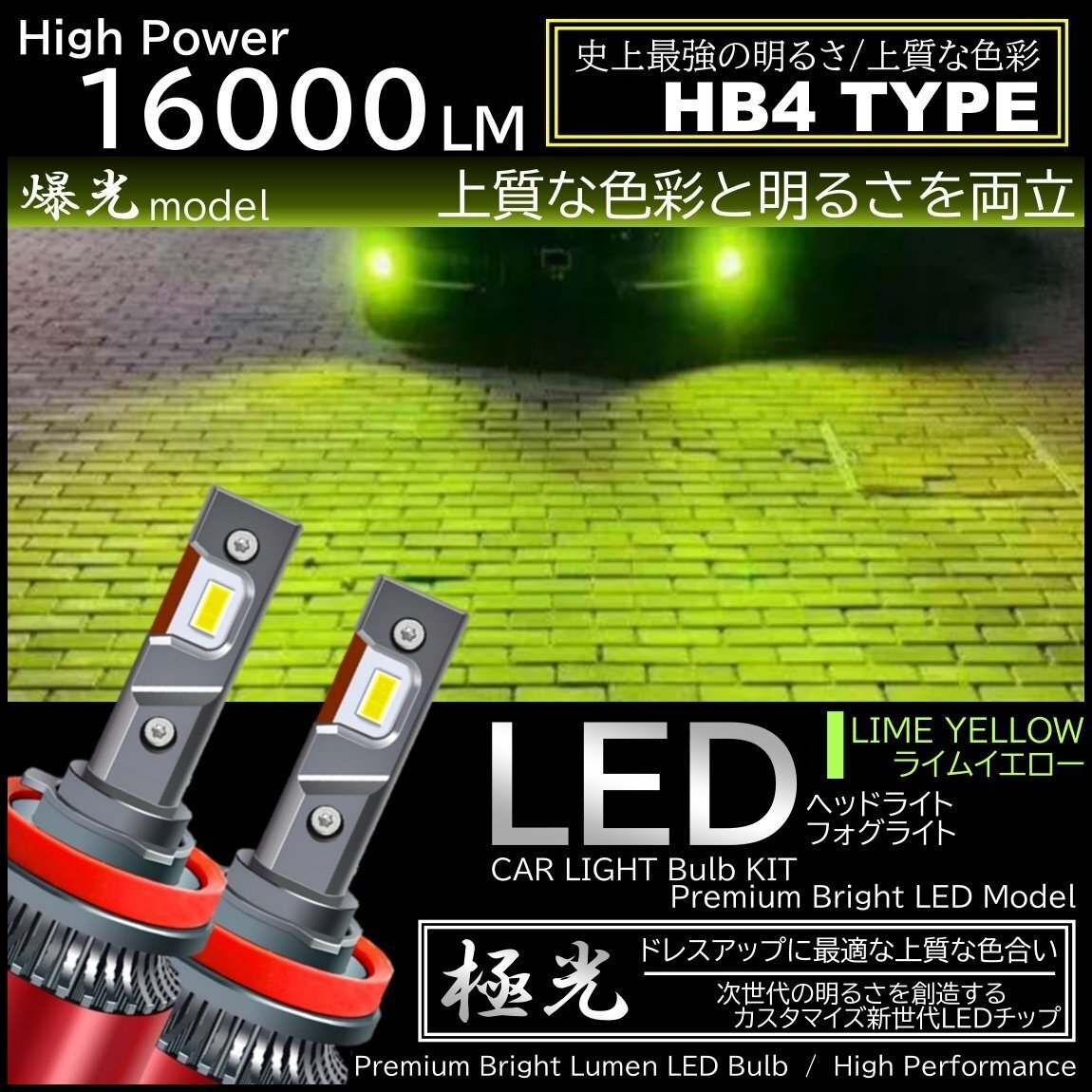 - 16000LM ライムイエロー 爆光LED ハイスペック HB4 LEDヘッドライト LEDフォグランプ ライム イエローフォグ