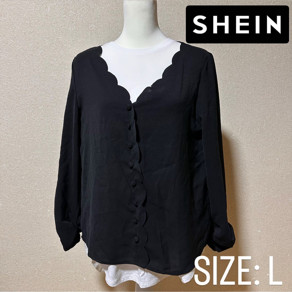 - 【SHEIN】スカラップ 長袖 ブラウス 変形袖 Lサイズ