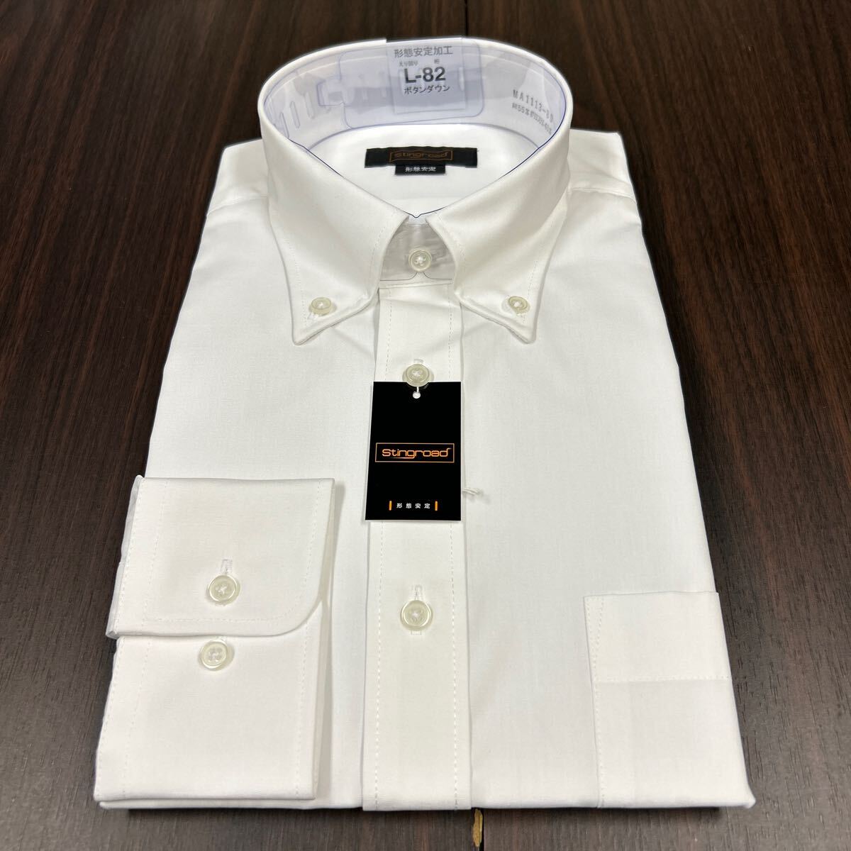 - 綿高率白無地形態安定ドレスシャツ L-82ボタンダウン