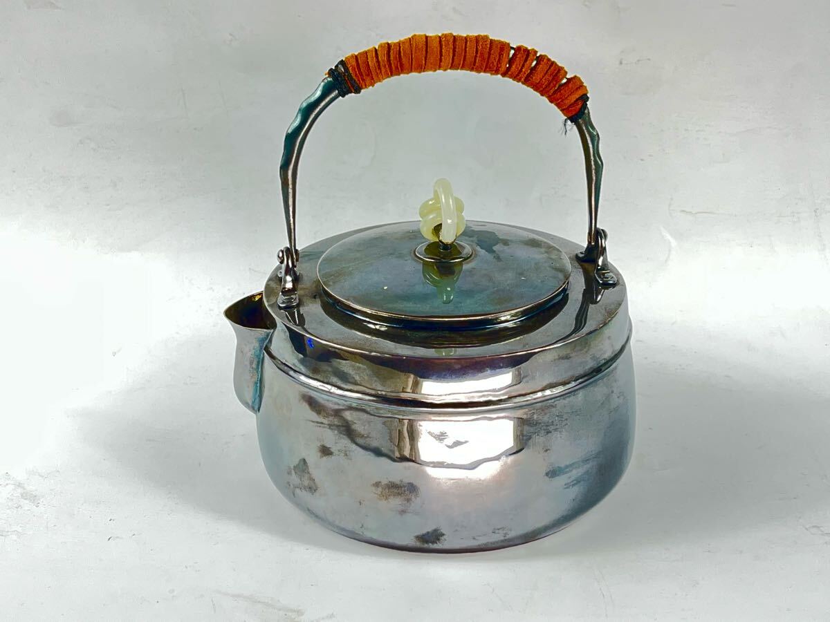 - 純銀 銀瓶 湯沸 玉摘 刻印有 金属工芸 煎茶道具 茶道具【博圓】重529g